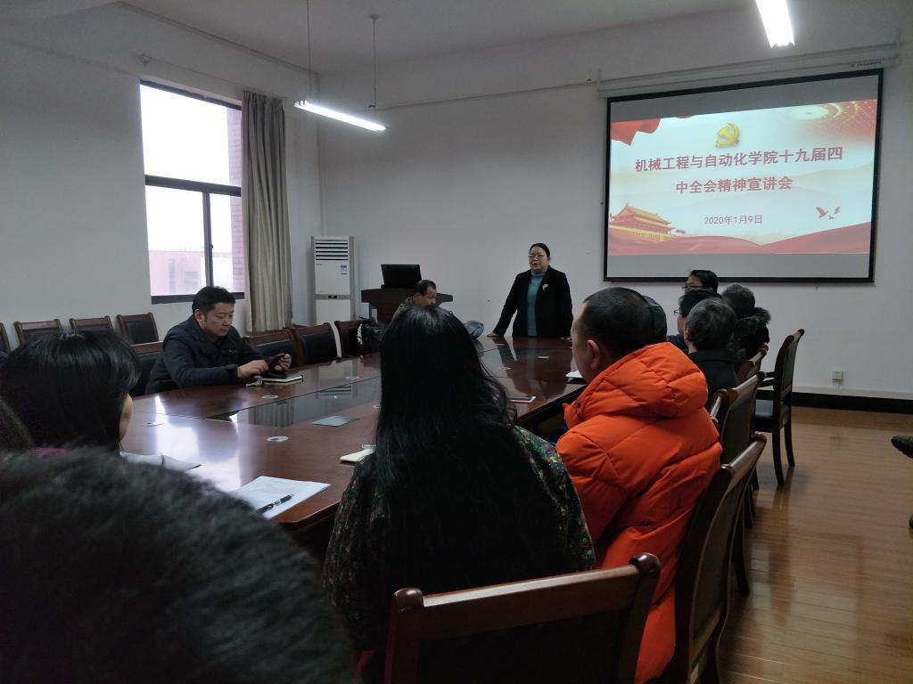 1月9日在8E417会议室,机械yl6809永利集团开展党的十九届四中全会精神宣讲会,学院领导班子、系部主任和各支部书记参加了学习,宣讲会由院党委书记肖信华同志主持和宣讲。