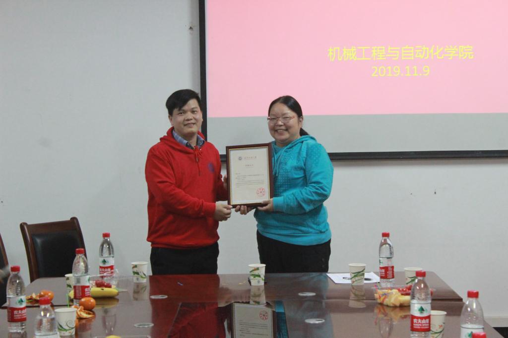 而后,周东平同学为学校捐赠了新的设备,学院为他颁发了捐赠证书。马双宝告诫大家,不要频繁地转换工作岗位,要在自己的岗位中深入学习,勤反思,多思考,工作之余也要多注意身体。