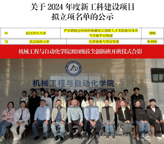 学院开设第一届机械拔尖创新人才实验班。获批2024年度新工科建设项目2项,杜利珍老师获批湖北省线上线下混合式一流课程1门,李勇峰老师出版教材1部。
