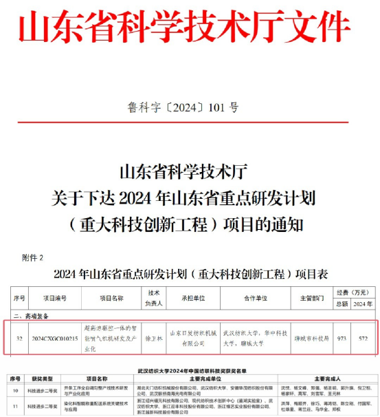 2024年梅顺齐教授分别获湖北省科技进步二等奖,中国纺织工业联合会科技进步二等奖各1项,沈忱博士获中国纺织工业联合会科技进步二等奖各1项。林富生教授申报中纺联专利奖成功入围。2024年学院实现省部级重大项目的突破,与山东日发纺机共同申报山东省重点研发计划,获得政府立项支持,项目总经费973万元,其中学院经费达340.2万元。