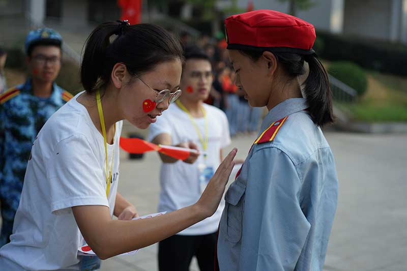 参加活动的2019级新生张晨说到:站在合唱的队伍中,看着飘扬的五星红旗,每一句歌词都深深击中我的内心,作为一名新时代青年,要将小我融入大我,用行动践行对祖国的誓言。