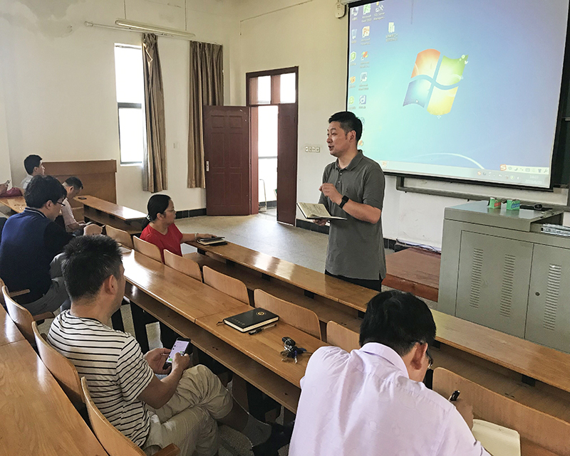 之后,肖书记组织全体教职工学习学院绩效分配文件和考勤制度等规定,并做详细解读。余联庆院长详细部署了暑假前学院各项工作。