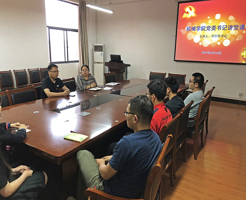 2019年5月14日,永利集团党委肖信华书记参加永利集团研究生党支部主题党日活动,指导研究生党员开展政治理论学习,并为全体党员讲党课。永利集团党委副书记刘韦参加活动。