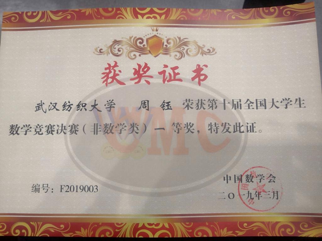 3月29日至31日, 由中国数学会主办、哈尔滨工业大学承办的第十届全国大学生数学竞赛决赛在哈尔滨举行。经过激烈角逐,我校永利集团2015级周钰同学在非数学专业组决赛中脱颖而出,荣获全国一等奖,决赛成绩排全国第二。这是我校学子首次在全国大学生数学竞赛中获国家级一等奖,也是我校参加该赛事以来取得的最好成绩。