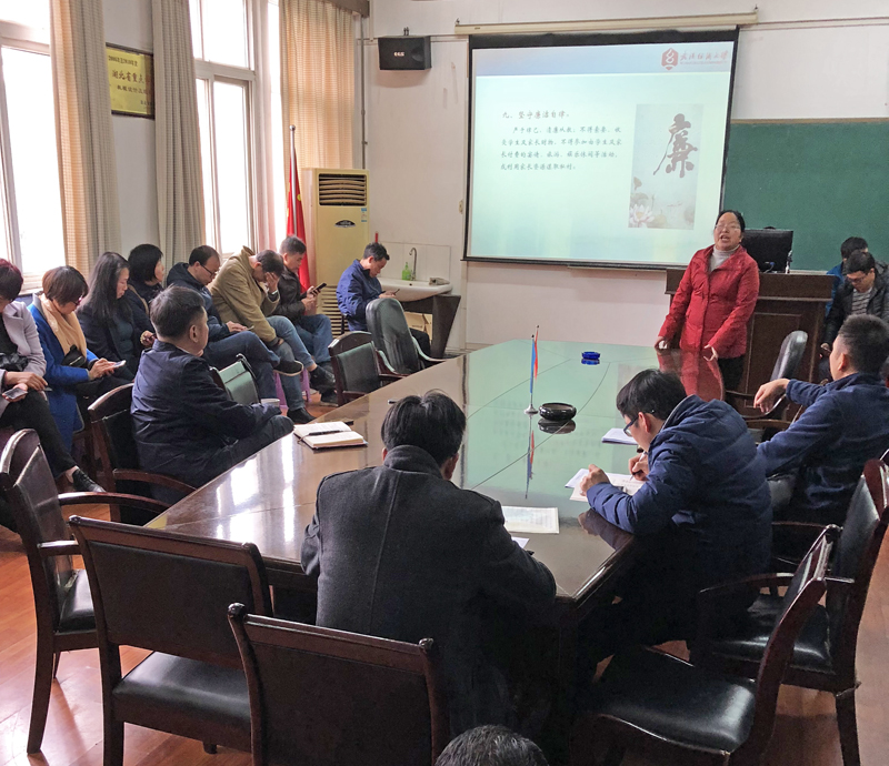 党委副书记刘韦说,《准则》明确了新时代教师职业规范,划定基本底线,深化了师德建设,是国家加强新时代教师队伍建设,提高师德水平,在全社会塑造教师美好形象的重要举措。高校学生工作者担负育人的重大使命,在工作中必须坚持以立德树人为根本,落实好、执行好《准则》,认真贯彻执行党的教育方针,对照“四有好教师”的标准,抓好辅导员教师的师德建设,提升育人水平。各位辅导员要做到:爱岗敬业、关爱学生、诚实守信、廉洁自律,为学生成长成才和健康发展而辛勤耕耘。