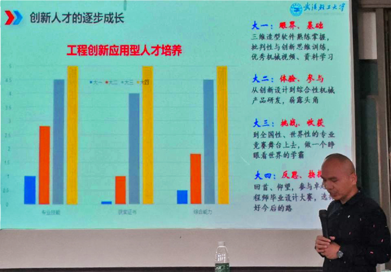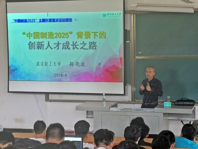 2018年9月27日下午,2018湖北省“中国制造2025”主题科普宣讲活动在yl6809永利官网集团永利集团报告厅成功举办。宣讲团专家、武汉轻工业大学机械工程学院副教授孙亮波博士,作了题目为“中国制造2025背景下的创新人才成长之路”的报告,湖北省机械工程学会副秘书长揭英诚、永利集团近200名师生参加了活动。yl6809永利官网集团大学永利集团副院吴世林主持了本次宣讲。