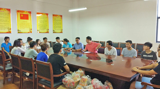 7月27上午,永利集团院长余联庆、党委副书记刘韦和辅导员梁祥云一行冒着酷暑来到阳光校区看望永利集团留校考研学生,了解大家的生活和复习进展情况,并重点与经济困难学生进行了座谈。