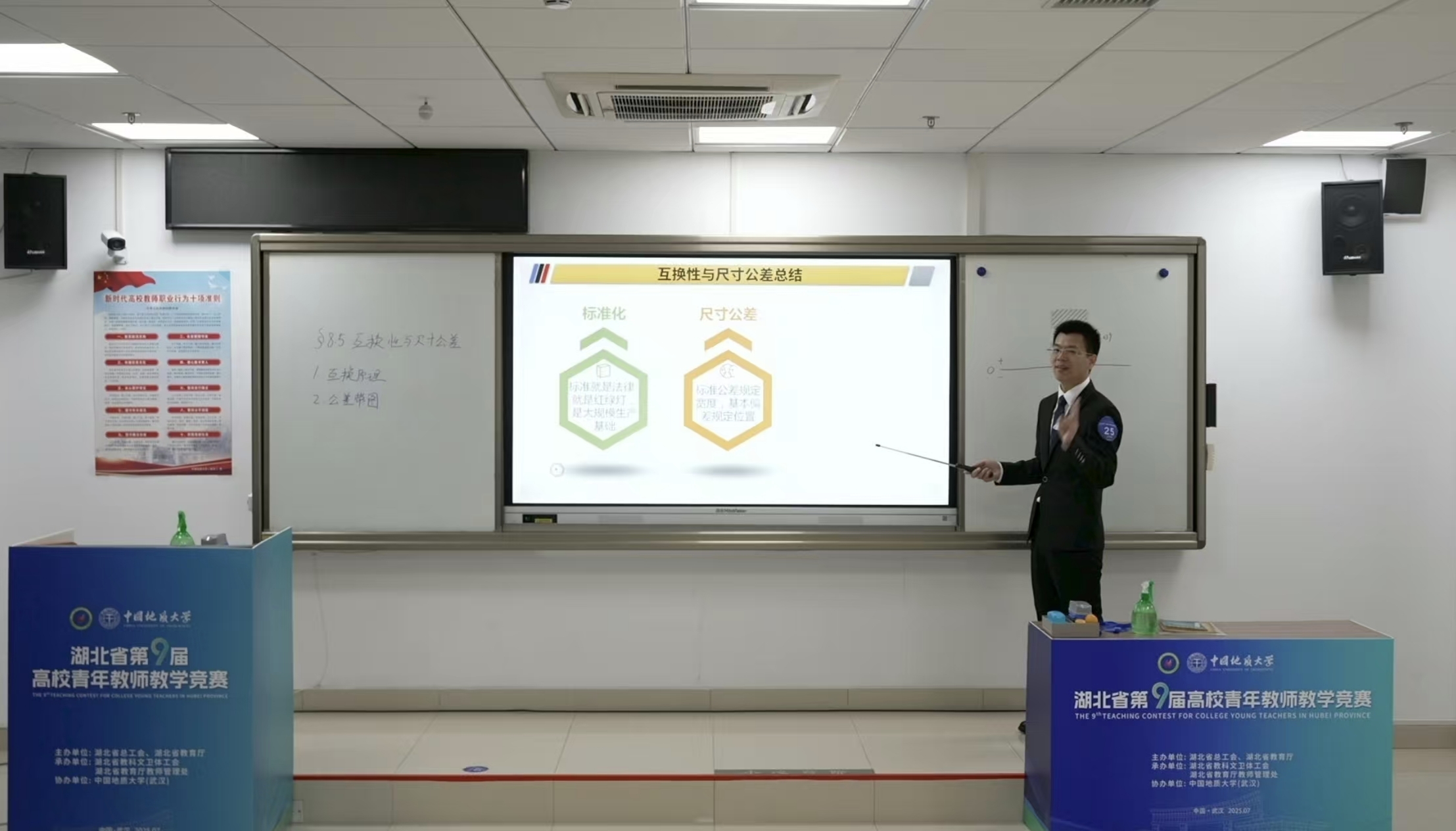 比赛中,孟凡贺老师结合所讲授的《工程图学》课程特色,展现了独特的教学风采。在教学设计上通过引入古代科技案例,开展与现代国标规范的时空对话,创新构建虚实双轨、痛点导航、矛盾驱动的三维教学体系,展现了扎实的教学功底和积极进取的精神风貌。