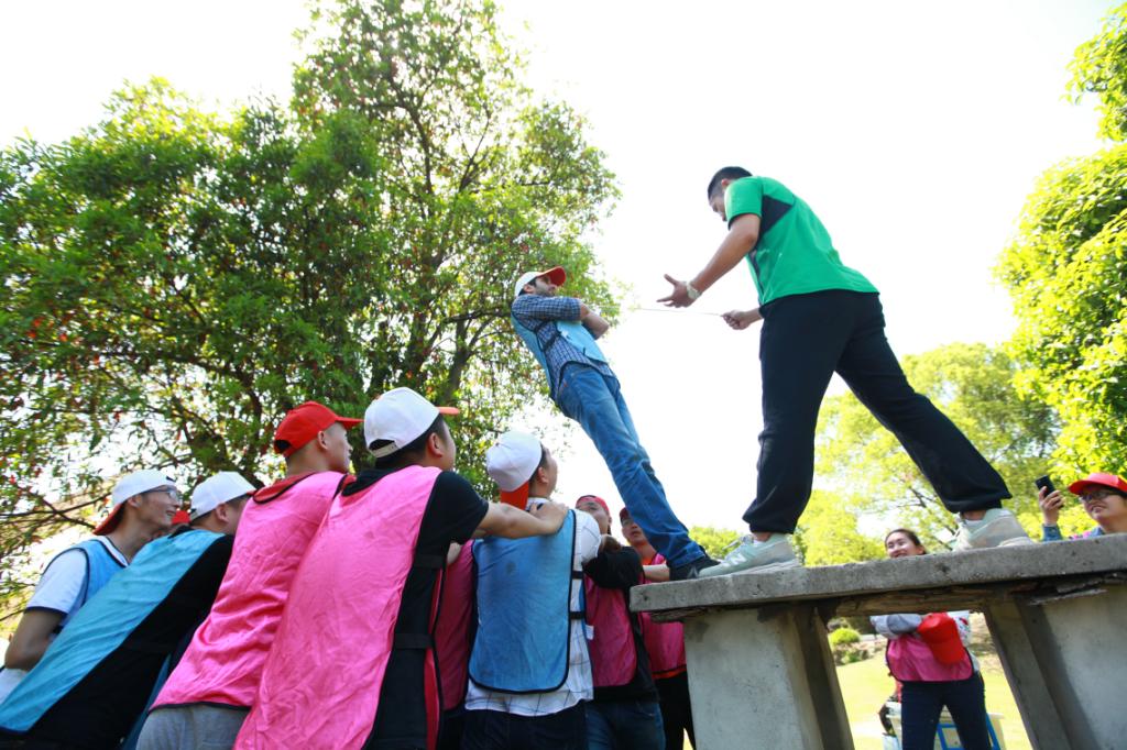 经过“信任背摔”项目,同学们相互鼓励相互支持,每个人倒在同学们用手织成的安全网上,锻炼了同学们彼此之间的信任。