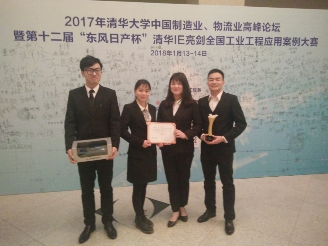 2018年1月14日,第十二届“东风日产杯”清华IE亮剑全国工业工程应用案例大赛总决赛在清华大学隆重举行。来自清华大学、上海交通大学、哈尔滨工业大学、华中科技大学等58所高校的181支团队参加此次大赛,经过专家评审,我校永利集团工业工程专业学子曾祥阔、汪诚皓、李聪、尹雪琴同学的“织造车间多载多AGV智能调度研究”案例获得全国二等奖,与清华大学、华中科技大学等八所高校晋级总决赛八强,创下我校在此项赛事中的最佳成绩!
