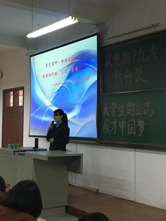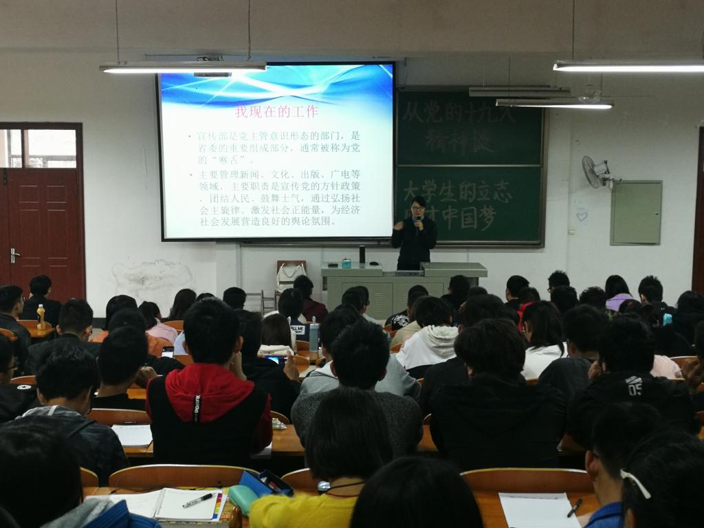 11月10日下午08FT101,我校2002级校友、现河南省委宣传部外宣办刘好为永利集团“支委在线”学生党员、入党积极分子和团员做了以“坚定信仰,脚踏实地,做新时代的三有青年”为主题的党课讲座。永利集团党委副书记卫冬妹及各学生支部书记、党员、预备党员与入党积极分子参加了此次学习。