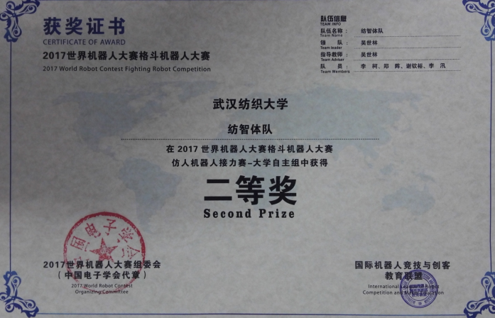 在8月27日结束的2017世界机器人大会上,yl6809永利官网集团工程实训中心指导的“纺智体”队经过激烈的争夺,最终获得格斗机器人大赛仿人机器人接力赛二等奖。