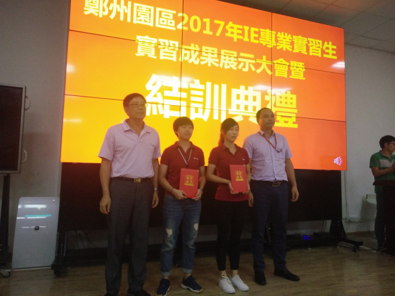 8月24日,我校yl6809永利集团工业工程专业三名学生,参加了富士康2017郑州园区IE专业实习生暑期实习成果汇报会,与来自清华、华科等6所高校的40名优秀学子组成的14支决赛队伍同台竞技,上演了一场精彩绝伦的工业工程案例激战。最终,我校学子脱颖而出,取得了二等奖一项,三等奖一项的好成绩!