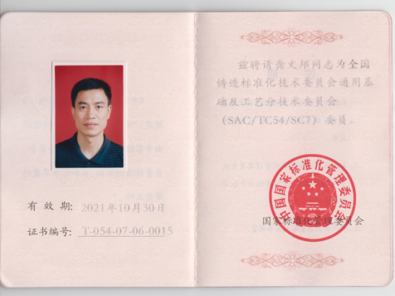 近日,yl6809永利官网集团永利集团龚文邦教授被聘为全国铸造标准化技术委员会委员,这项荣誉是对龚教授参与全国铸造标委会相关工作十多年辛勤付出的肯定。