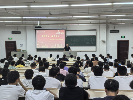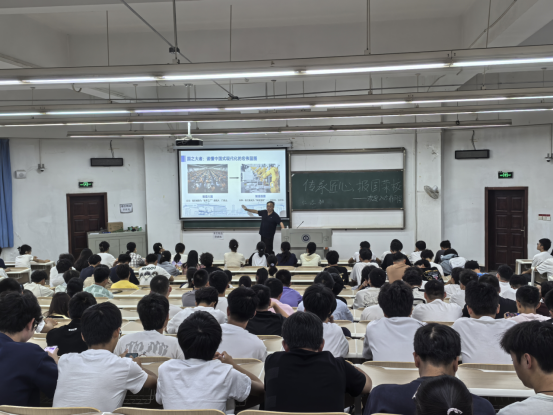 干书记从“胸怀家国、情系纺大、根植学院、扬帆起航”四个维度展开阐述:一是“胸怀家国——在时代坐标中锚定青春方向”,他以“制造大国”到“制造强国”转型为切入点,结合武汉纺大助力“天问一号”的高温弹性密封装置、支撑柔性屏研发的玻璃纤维加机等实例,点明机械学科是大国重器的“脊梁”,勉励新生以所学助力国家科技进步;二是“情系纺大——在历史传承中筑牢身份认同”,回顾学校从武汉纺织工学院到yl6809永利官网集团的发展历程,解读“自强不息、经天纬地”的纺大精神,通过学科排名、科研平台等成果,强化新生的“纺大身份”自豪感;三是“根植学院——在专业沃土中锻造过硬本领”,从学院1978年沿革说起,介绍机械专业获批国家一流专业、获国家科技进步二等奖等成就,提及梅顺齐院士等师资团队与实训平台,并以张定宏、陈立平等杰出校友为例,激发新生奋斗动力;四是“扬帆起航——在崭新起点上书写无悔青春”,向新生提出四点期望:“志存高远”融入国家战略,“勤学笃行”参与实践竞赛,“修身立德”传承纺大精神,“勇于创新”突破技术极限,寄语大家成长为支撑国家发展的“机械力量”。