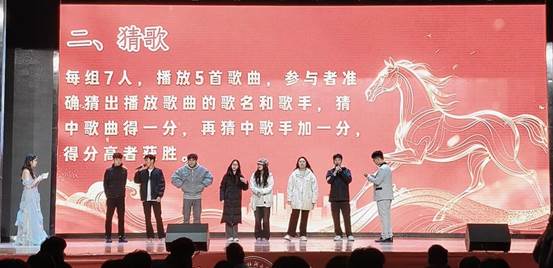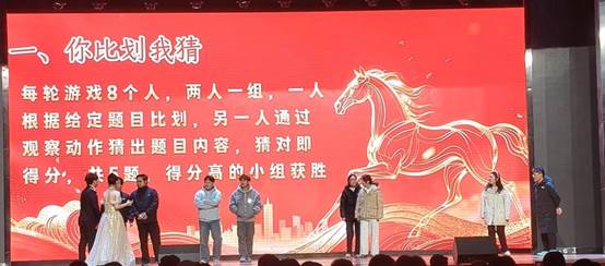 晚会中段穿插“你比划我猜”、“猜歌挑战”、“快问快答”等互动游戏,新生踊跃参与,在协作与竞技中增进了解,现场气氛轻松热烈,彰显永利集团团结活泼的集体风貌。