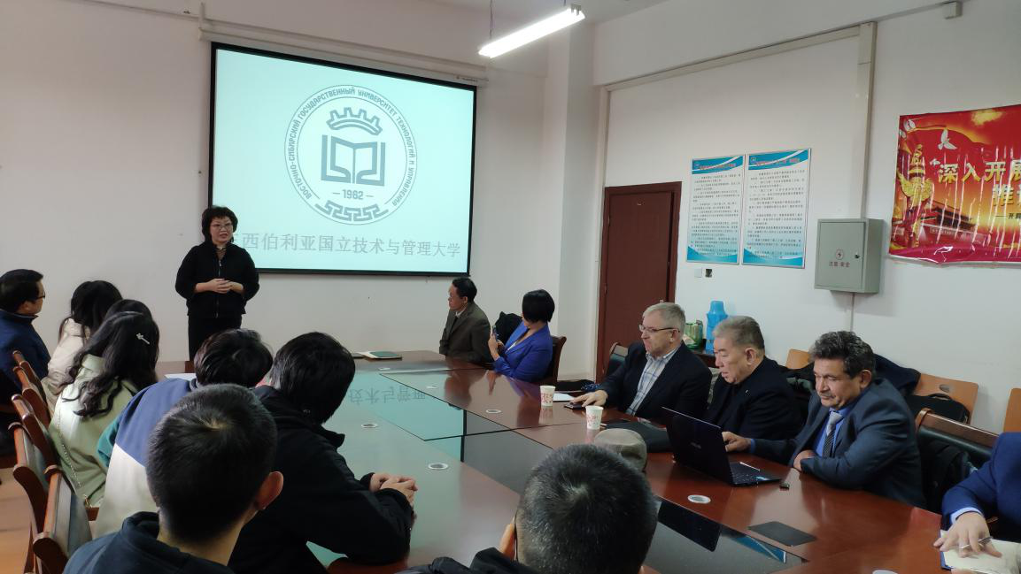 东西伯利亚国立技术与管理大学副校长阿萨朵耶娃О .А向与会师生介绍了东西伯利亚国立技术与管理大学的办学历史与发展现状,机械制造系主任格列士洛夫А. Д 介绍了他们学院的研究方向和学科专业设置,国际部主任尚布耶娃Б.В介绍了他们学校国际合作办学、留学生教育情况。