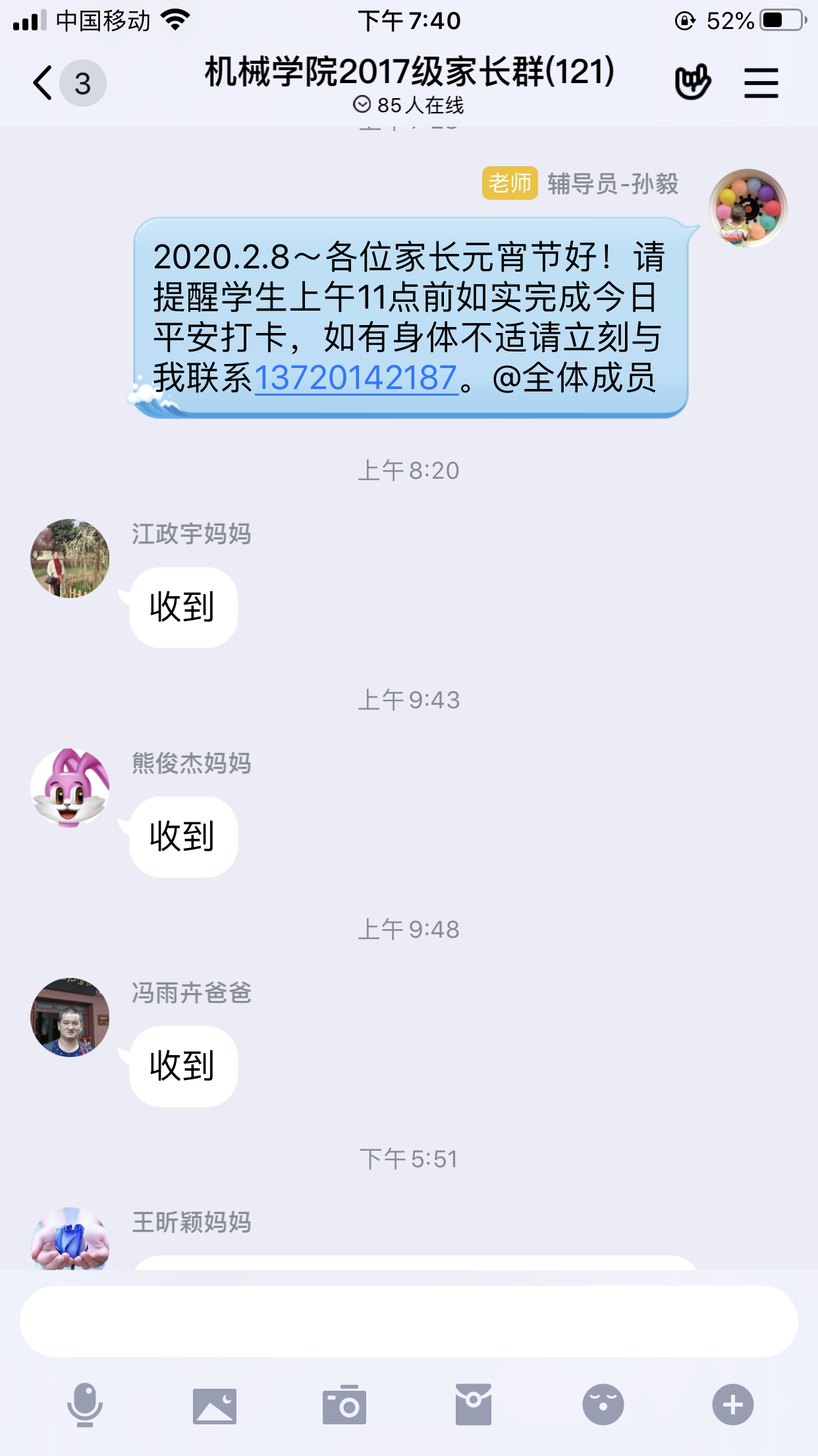 日报平安100%上报率。永利集团从疫情苗头伊始注意提醒学生安全防护,主动联系困难学生及家长,询问身体情况,督促学生完成日报平安打卡,每天上报率保证100%,不遗漏一个人。