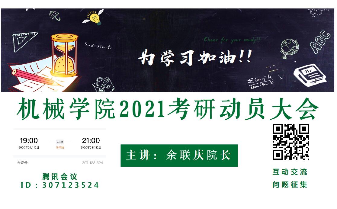 动员会上,余院长首先从“大众创业、万众创新”的国家政策引导、优秀企业对人才素质要求不断提高等角度向大家明确了考研的重要意义,鼓励大家积极深造,寻求施展个人才能的更大空间。同时,结合全球疫情发展情况,分析了未来考研形势变化。并从院校选择、研究生扩招、录取分数线划定,各高校历年报考情况等方面做了详细的解读。他希望,同学们对自己合理定位,正确选择报考院校和专业。他强调,同学们既然选择了考研,就不要轻言放弃,要坚定信心,持之以恒,争取在2021年研究生考试中取得优异成绩。在互动交流环节,针对学生提出的问题,院长结合切身体会向大家分享交流了如何在疫情期间做好复习备考,并向大家推荐了“每日打卡总结”的学习方法,帮助大家更好地建立自律习惯。