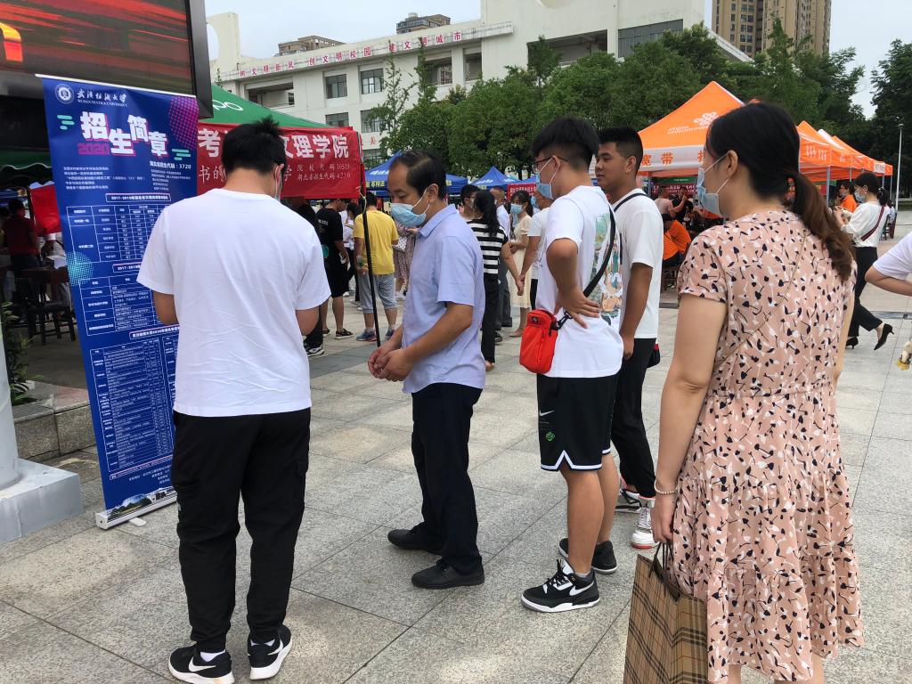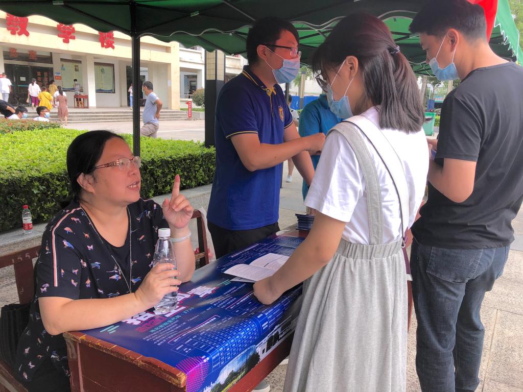 在天门中学集中咨询点,肖信华书记、刘韦副书记与工作组各人员一道热情接待考生和家长的咨询,详细解答各种提问,为大家解除疑虑,咨询场面非常火爆。