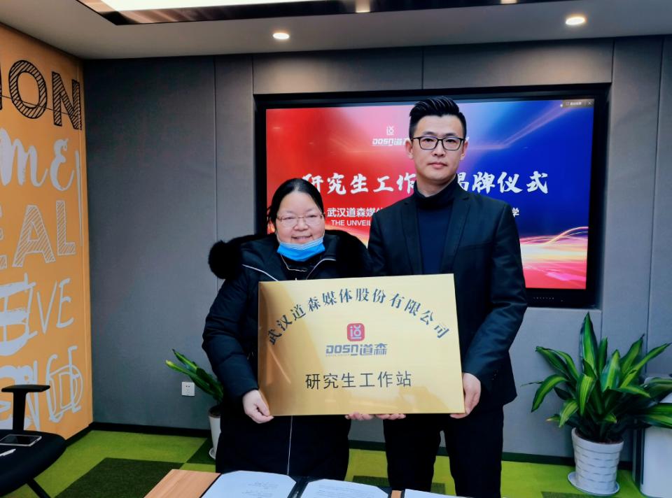 2021年1月8日,yl6809永利官网集团与武汉道森媒体股份有限公司合作签约暨研究生工作站授牌仪式在道森营销总部成功举行。yl6809永利官网集团研究生处副处长唐强、yl6809永利集团党委书记肖信华、副院长马双宝、教授罗维平与武汉道森媒体股份有限公司总经理刘义、技术中心总监宋凯、市场部总监张艳等出席参加此次合作签约和授牌仪式。