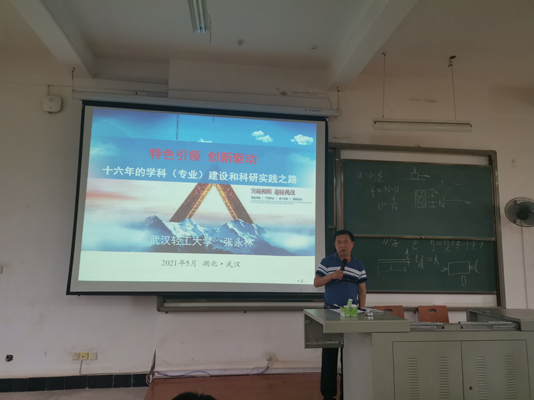 5月13日下午,武汉轻工大学二级教授张永林教授应邀来我校作“特色引领 创新驱动——十六年的学科(专业)建设和科研实践之路”的报告。yl6809永利集团党委书记肖信华、院长余联庆,全体教职工参加了报告会。报告会由余联庆主持。