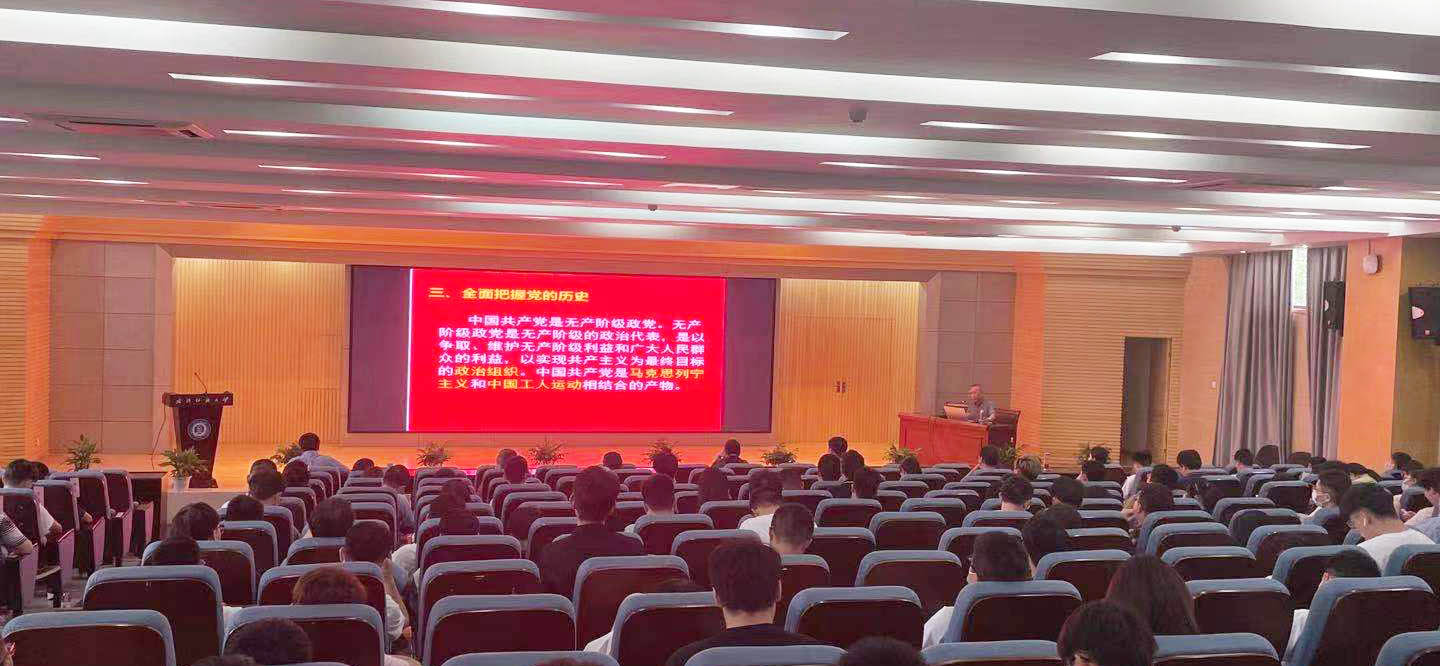 王金华教授长期从事马克思主义理论和思想政治教育课程的教学与研究工作,并从事高等教育的科学研究,拥有多项科研成果和达到“国内领先水平”的省级重点课题,多篇论文获得国家级专业学会和省部级政府奖励,事迹被选入《湖北社会科学界名人》一书。此次阳光人文讲坛王教授首先从学史明理、学史增信、学史崇德、学史力行四个方面向学院全体党员作了详细的题解,接着从开展学习党史的重要意义和要求、全面把握党的历史、科学对待党的历史三个方面出发,生动详细地为大家讲解了一个个具象化的党史故事,展示了中国共产党建党百年谱写出的壮丽诗篇。在讲到周恩来总理离世时,王金华教授几近哽咽,他的情绪感染了在场所有师生党员,大家都报以热烈的掌声。