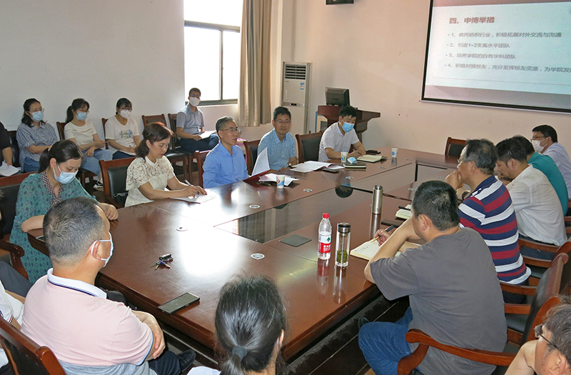 学院院长余联庆从教学、科研、学科建设、人才培养等方面汇报了学院目前的工作进展和下一步的工作规划,学院党委书记干文勋汇报了学院近期的人才引进工作进展。