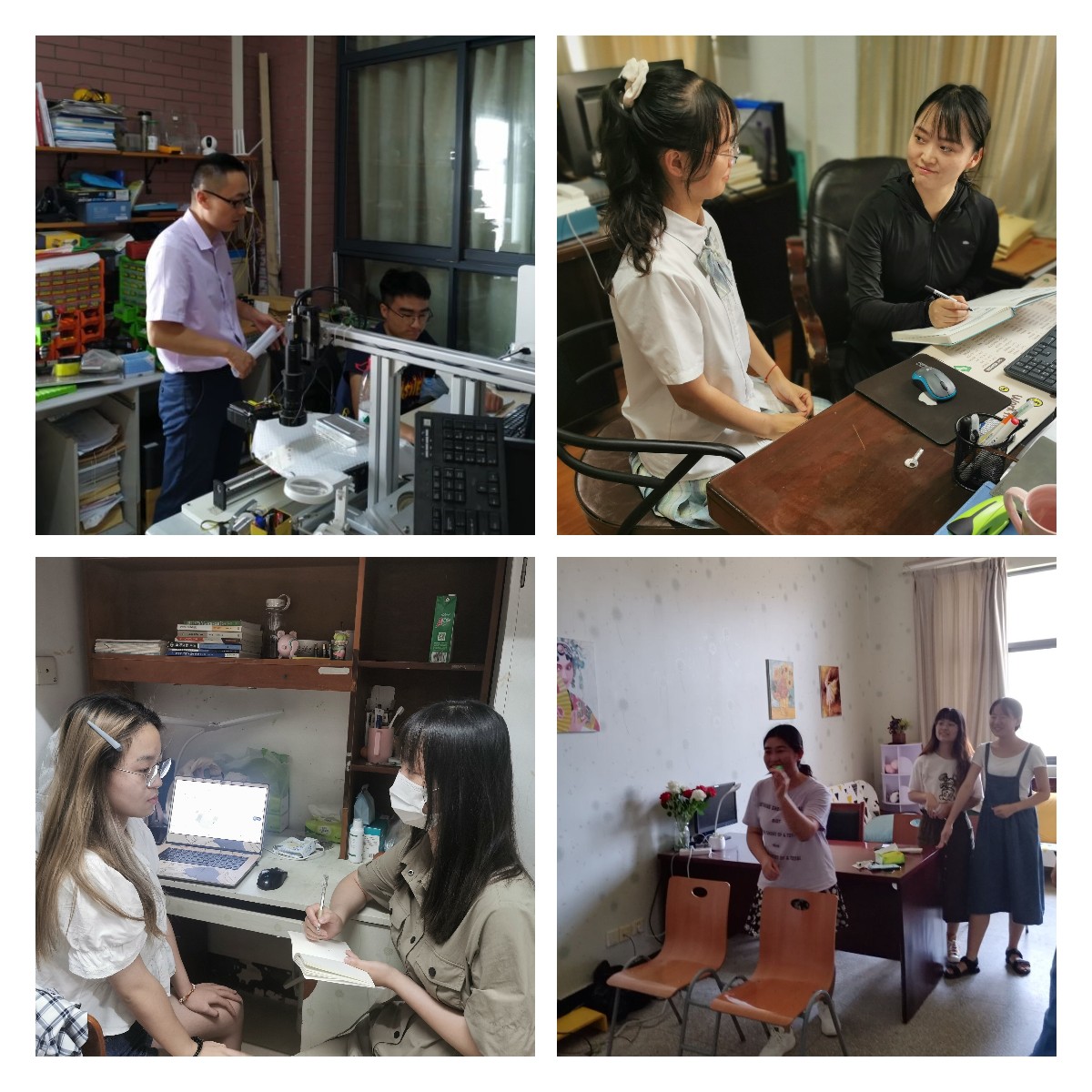 图为值班老师深入实验室和宿舍、与留校学生谈心谈话、组织开展趣味活动