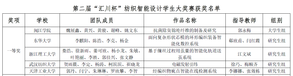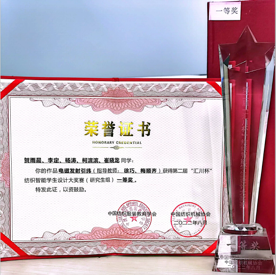 近日,第二届“汇川杯”纺织智能学生设计大奖赛在浙江新昌落下帷幕。经过专家评审和现场答辩,由yl6809永利集团徐巧和梅顺齐老师指导,硕士研究生贺雨晨、李定、杨涛、柯滨滨和崔晓龙组建的团队作品《电磁发射引纬》荣获总决赛一等奖。