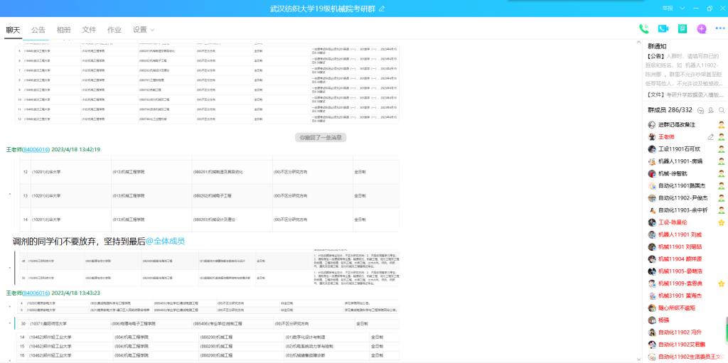 学院设立考研责任导师制和学长帮扶团,为考研学子保驾护航。学院领导牵头,1-5名考研学生配备1名专业导师和1名已经上岸的学长。19级辅导员王娟老师从新生入学教育开始就为考研深造做了详细指导。在大二、大三阶段学院多次开展“院长答疑课”,干文勋书记、余联庆院长分班级分专业,前后为19级同学们进行多达6次的考研动员;大四阶段,专业导师对结对考生进行择校辅导、专业课答疑,学长在考研群为同学们提供报考院校近年真题和答疑辅导;考研最后阶段,学院召开考研冲刺大会,为考生订制“械君加油,一研为定”考研可乐。