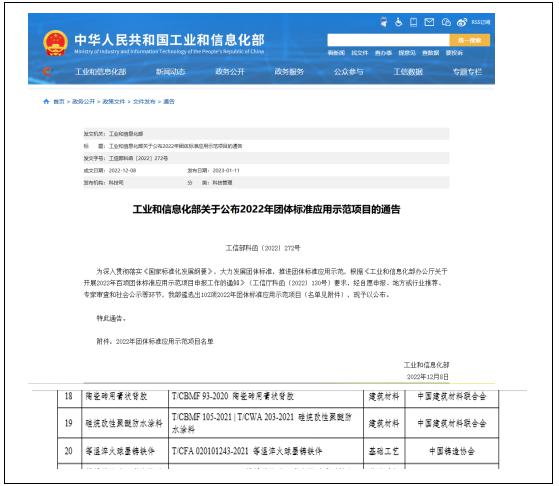 入选工信部2022年度百项团体标准应用示范项目奖牌