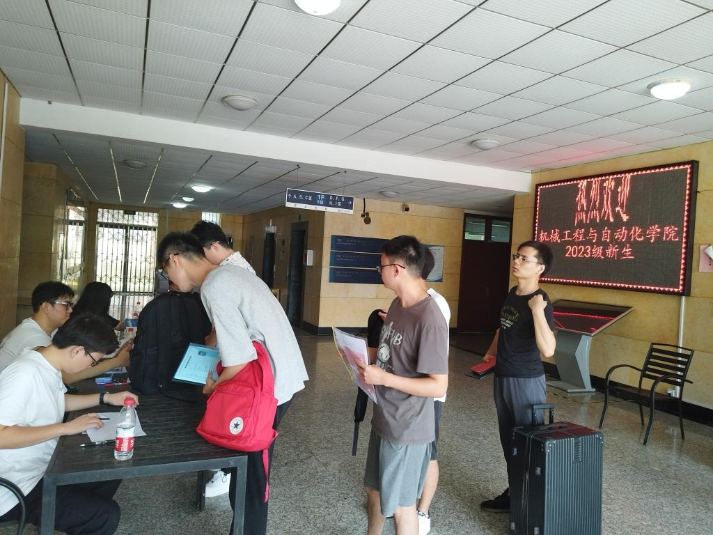 学院安排党员志愿者进行迎新结对并提前整理新生宿舍,在8E一楼大厅为新生办理了报到手续,开展了新生游园活动、参观纺织科技馆和交流会议,学院张成俊副院长、周玉艳副书记和谢超老师到学生宿舍进行了走访,营造了良好的迎新氛围。