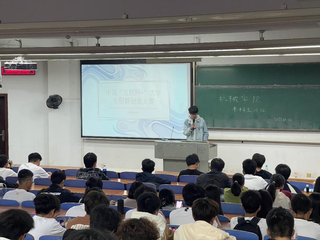 首先,杨鑫同学结合自身经历从什么是“互联网+”、参赛类别、参赛准备等方面对“互联网+”大学生创新创业大赛进行全面介绍;随后,研究生饶灿灿详细讲解了中国大学生服务外包创新创业大赛、中国大学生机械工程创新创意大赛的竞赛目录、作品要求、打分标准等等;然后,刘奇向同学们们讲述了全国大学生金相技能大赛的背景和目标,并分享了相关专业知识和实践经验。最后,王有为详细解释了全国大学生先进成图技术与产品信息建模创新大赛的组织形式、参赛要求和评选标准。