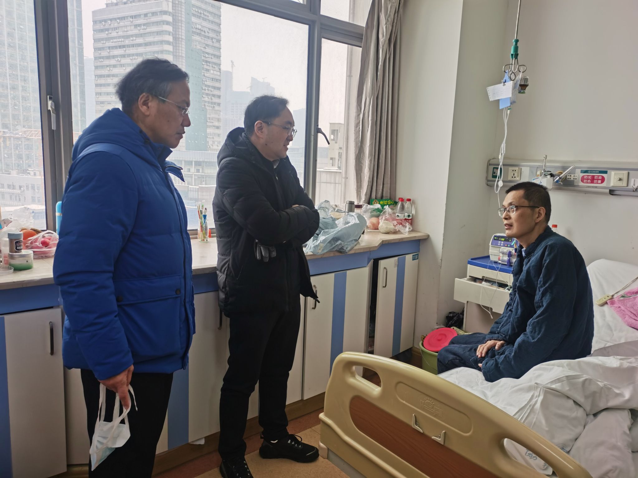 2月7日上午,副校长傅欣在华中科技大学同济医学院附属协和医院看望了因病住院的马双宝老师,表达了学校的慰问、关心和新春祝福。永利集团领导班子成员参加慰问活动。