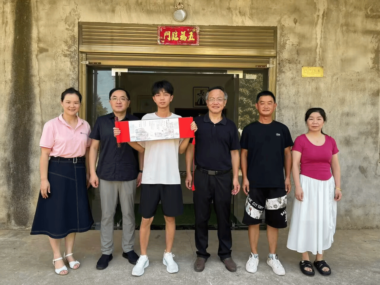 8月12日,副校长傅欣带队深入鄂州市华容区庙岭村为永利集团2024级本科新生亲手颁发录取通知书。永利集团相关负责人和新生辅导员一同参加活动。