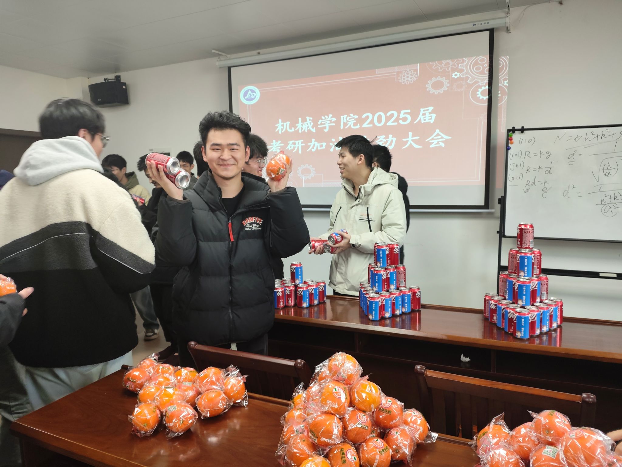 活动现场,播放了学弟学妹录制的考研鼓励视频,并为大家发放了心想事“橙”和印有“一研为定,械君加油”字样的专属定制可乐,饱含着全院师生对考研学子的深情祝福和亲切关怀。