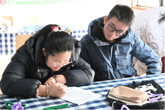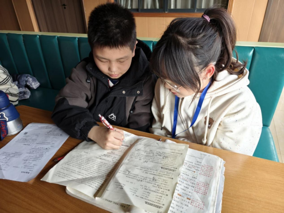 活动伊始,志愿者们与小朋友们时隔三个多月再度见面,却完全没有表现出生疏。课程辅导环节,志愿者们化身“知心哥哥姐姐”,以趣味问答等生动新式开展课业辅导。孩子们专注的眼神与志愿者们的耐心讲解相映成趣,原本安静的食堂逐渐充盈着思维碰撞的活力。