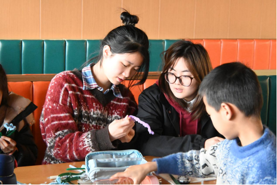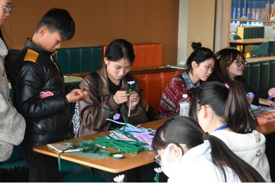 当彩色的扭扭棒在桌面铺展成虹,七彩课堂瞬间化身成创意工坊。彩色的扭扭棒就是孩子们思想的延伸,他们最直白最热烈的感激之情从小小的手中流出。在志愿者们指导下,一朵朵色彩缤纷,形态各异的郁金香从孩子们的指尖绽放,喜悦的笑容也从一个人渲染到每个人。小朋友们都高兴地说:“我做的花最漂亮!我要把花送给妈妈!”支教部负责人李清也表示:“我们希望通过知识传递和情感教育,让孩子们在实践中学会表达爱。”活动现场的每幅画面,每一声欢笑都成了春日校园最动人的风景。