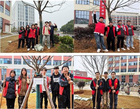 活动前期,2024级各班自行认领班树,围绕树牌名字、形状颜色、材质等多方面开展设计班级树牌。活动现场,后勤保障处吴主任简单讲解植树操作流程后,学生们便投入到植树活动中,以实际行动为校园添绿,不负春光。他们有的挥锹铲土,有的扶苗填坑,有的浇水灌溉,每一个环节都认真细致,配合默契。当班牌被一一挂上树梢时,整个植树地点瞬间变得热闹起来。学生们纷纷围在树下,欣赏着自己的杰作,合影留念,脸上洋溢着自豪和喜悦的笑容。他们表示,植树挂牌不仅代表着班级的团结和力量,更象征他们大学生活的美好开端。