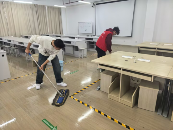 3月6日,在第62个“学雷锋纪念日”到来之际,机械志协发起“尚美办公”实验室清洁行动。70余名志愿者分组深入十教实验楼,以“地毯式”清洁让公共空间焕然一新。从桌面除尘到地面消杀,从设备整理到窗台擦拭,3小时奋战令实验室重现明净。活动负责人姚倩表示:“劳动不仅是汗水,更是对‘螺丝钉精神’的践行。我们希望通过常态化服务机制,让‘尚美’理念根植于日常。”