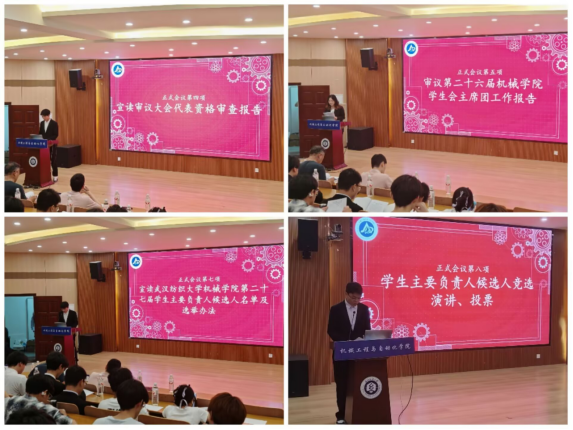 随后,新一届学生会主要负责人候选人依次登台,通过竞选演讲的方式,向代表们详细介绍个人经历及工作计划。学生代表采用无记名投票的方式,本着民主、公平、公正的原则,差额选举产生了yl6809永利官网集团第九届学生委员会候选人、yl6809永利集团第二十七届学生会主要负责人。