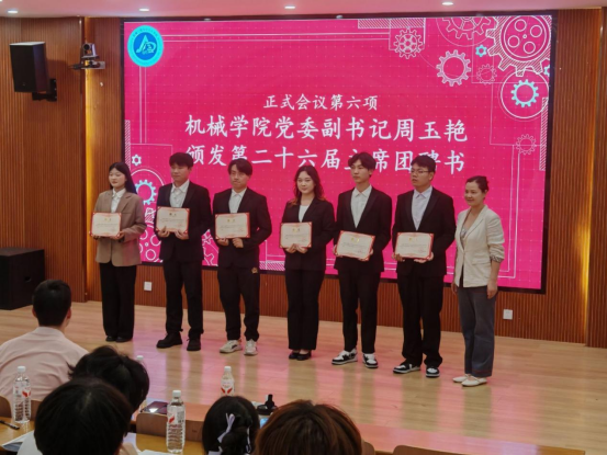 第二十六届学生会主要负责人依次进宣读审议大会代表资格审查报告、第二十六届永利集团学生会主席团工作报告、yl6809永利官网集团第九届学生委员会候选人和永利集团第二十七届学生主要负责人候选人名单及选举办法。随后由学院党委副书记周玉艳为第二十六届学生会主要负责人颁发聘书并合影留念。其中,工作报告系统全面地总结了一年来各项工作落实情况,着重提出了亟待改进创新的不足之处和未来的工作展望。
