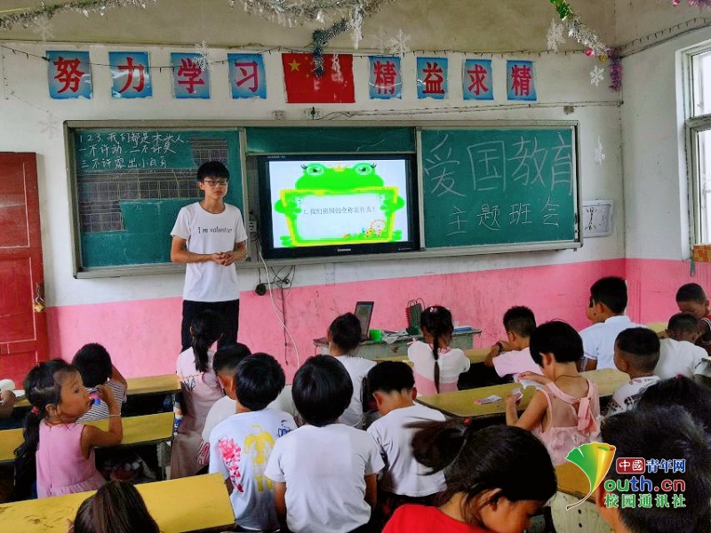 在祖国的70华诞到来之际,为庆贺祖国华诞和弘扬爱国主义精神,同时让青少年能够继承和发扬爱国主义精神。8月20日,yl6809永利官网集团永利集团拓梦支教队在暑期支教地安徽省亳州市涡阳县刘庄户小学举行了“青春为祖国歌唱,红歌唱响校园”的爱国主义主题教育活动。通过举行爱国主义主题班会,红歌唱响校园等形式的特色活动,让孩子们进一步了解爱国主义,从而继承并发扬爱国主义精神。穿过历史的风雨,跨越时间的长河,鲜红的旗帜上,五角星闪耀的光芒,照亮了每一个华夏儿女的心,当孩子们看到五星红旗时,希望从他们的心底可以由衷地发出“我爱你祖国”的时代最强音!中国青年网等多家重要媒体对拓梦支教队的活动进行了采访和报道。