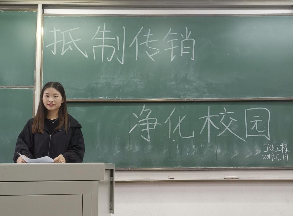 在各年级的年级大会或主题班会上,各辅导员、班主任通过大量真实的传销案例,从传销组织的显著特征、传销组织的形式、传销的危害性和诱骗手段、如何防范传销、树立正确的择业观和价值观等多个方面向同学们开展“抵制传销、净化校园”为主题宣传教育。