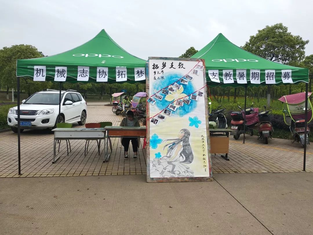 活动期间,阴雨的天气没有影响大家的工作热情。在现场,志愿者们制作的爱心板报形象生动的展示了往届支教队工作生活情况,吸引了许多同学驻足观看,并主动咨询工作人员相关情况。