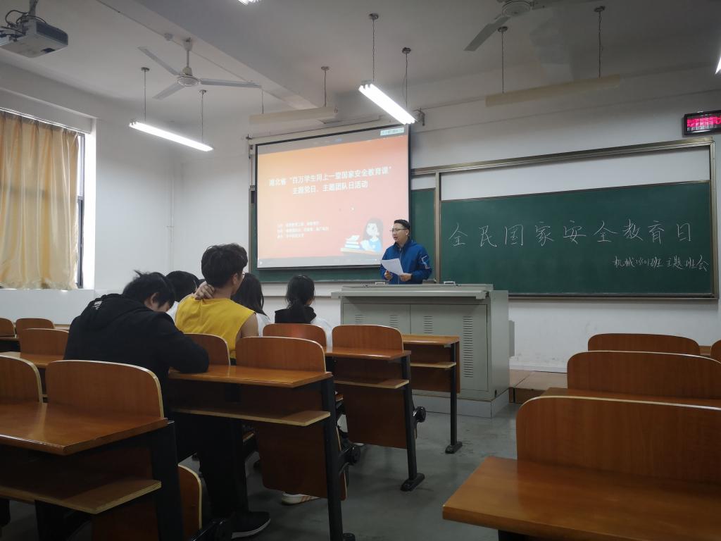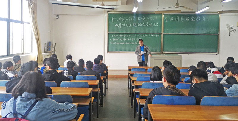 在4月14日的主题班会上,各辅导员、班主任组织学生集体学习了《中华人民共和国国家安全法》等相关法律法规,让同学们充分认识国家安全的重要战略地位与意义,知晓公民个人在维护国家安全中的作用和义务。有的班级集中观看了国家安全视频资料;有的班级结合迎接中华人民共和国成立70周年和第七届世界军运会,带领同学们谈了对于校园安全、网络安全的体会;有的班级从大学生切身安全与利益展开大学生安全教育,组织同学们学习安全知识,认识到安全的重要性。