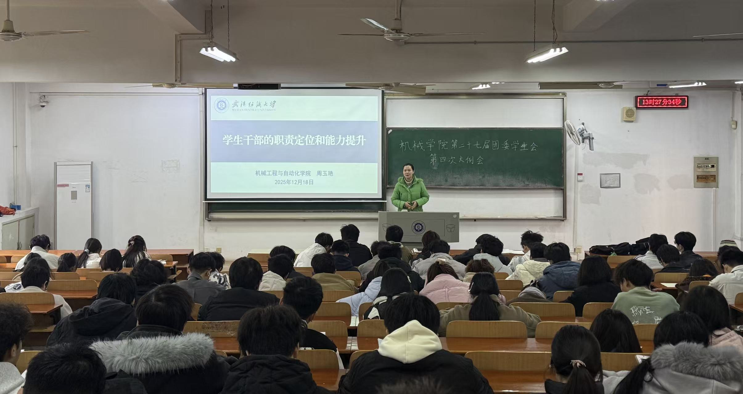 周玉艳以“学生干部的职责定位和能力提升”为主题,结合详实的数据与生动的案例,为在场学生干部带来了一场内容丰富、启发性强的培训。她首先通过智联招聘2024年就业调研数据,分析了当前毕业生就业意向与竞争力构成,指出学生干部经历在个人综合素质提升和长远发展中的“长尾效应”。她强调,学生干部经历不仅是履历上的一笔,更是突破舒适圈、培养自我驱动能力和时间管理能力的重要平台。她进一步围绕“强精进工作、肯干事、能干事、会干事”四个维度,阐述了学生干部应有的责任担当与能力素养。她鼓励大家要主动扛起责任,树立学院良好形象;要直面问题,坚持不懈从自身做起、从小事做起;要提高解决问题的能力,学会为决策提供方案;更要注重团队协作,激发集体潜能,实现“一群人走得更远”。