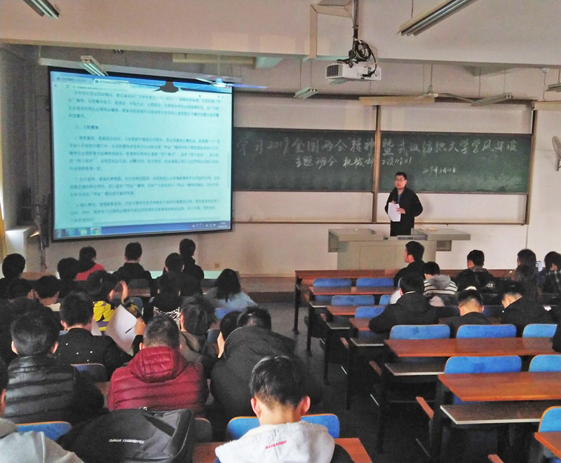 其他年级辅导员老师在大会上还指出,良好的宿舍生活环境也是学风建设的有机组成部分,要做到遵守学校宿舍管理规章制度,不使用违禁电器,杜绝安全事故。永利集团党委刘韦副书记在讲话中号召所有同学熟知牢记纺大日常管理各项规定,一起努力建设良好学风,共同营造永利集团秩序良好、气氛和谐的学习与生活环境。