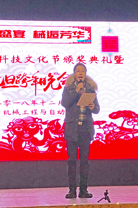 接下来的文艺演出以“博学多识,笑傲江湖”、“星光璀璨,邀约盛宴”、“岁暮天寒,温情邂逅”、“岁月如歌,不负芳华”四个篇章展开,气氛热烈,精彩纷呈,高潮迭起。既有饱含深情的歌舞表演《爱的华尔兹》展现机械学子的青春活力,又有绘声绘色的音乐剧《等我回家》以细致入微的舞姿以及动人的歌喉吸引观众的眼球,还有来自五湖四海的机械学子用各自方言演绎的《我在纺大》。精彩的节目不仅体现了同学之间的深厚情谊,更展现了机械学子勇于创新、积极向上的精神风貌。